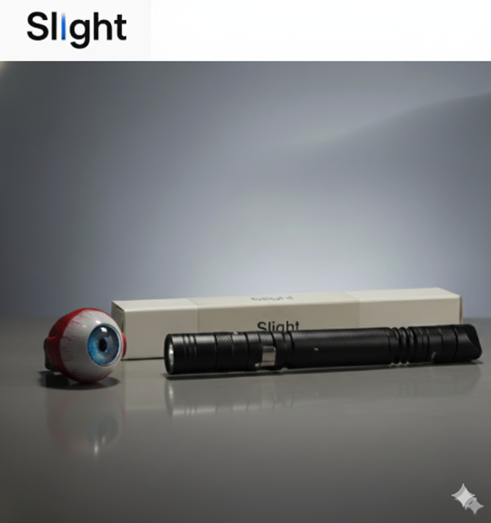 "Slight is a versatile, compact ophthalmic illumination tool featuring a precision slit beam on one end and a high-contrast cobalt blue light on the other. It is designed to aid in the observation and detailed visualization of the anterior segment, offering essential versatility for precise clinical assessment and documentation of ocular surface characteristics."